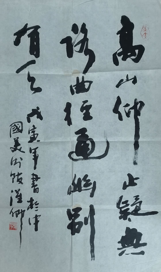 1997年何汉卿老师现场创作、馈赠。1994年我大学毕业,分配至四川南充工作,在业余时间里,热衷于书法学习、创作。1997年,草书作品《龙》参加市里举办“迎香港回归祖国书画展”,有幸得到中国书画研究院副院长、著名书画家何汉卿老师的肯定和馈赠墨宝。 |